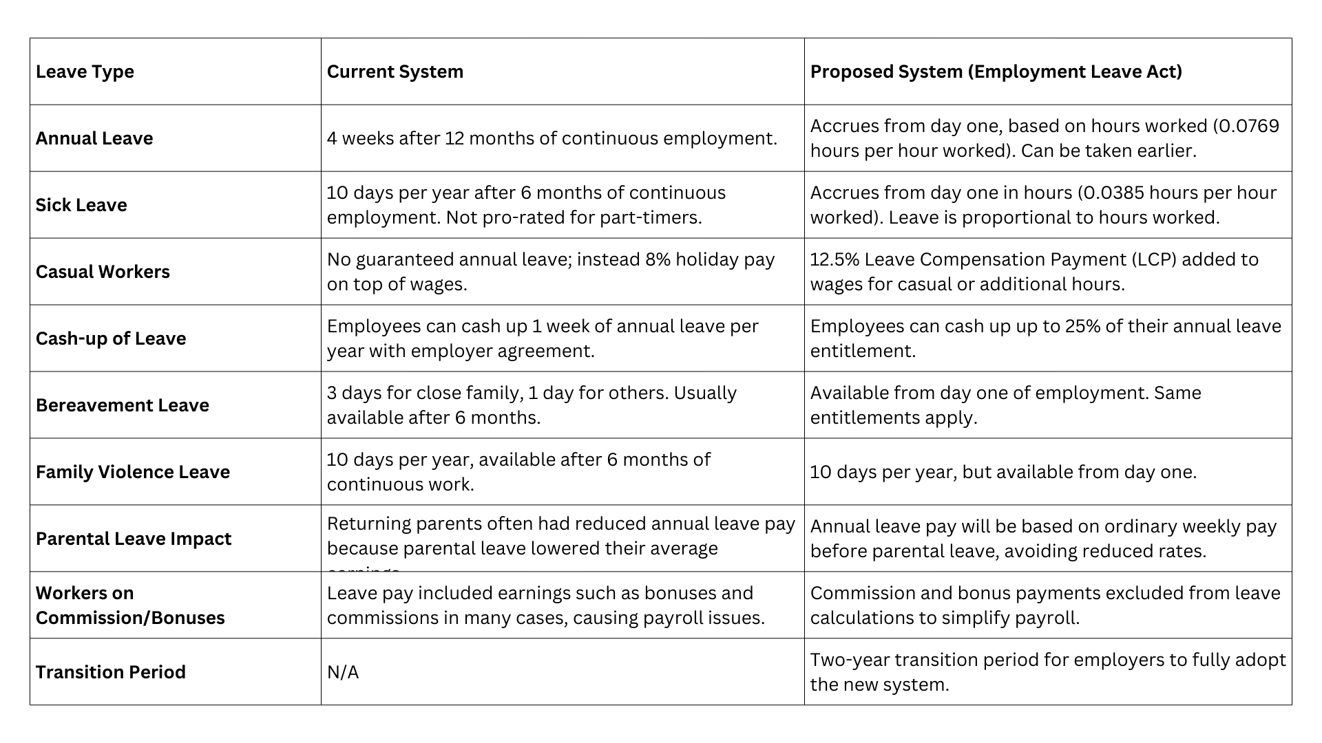 Employers are encouraged to start preparing now by reviewing payroll processes, checking how leave entitlements are tracked, and ensuring compliance with upcoming requirements under employment laws in NZ.